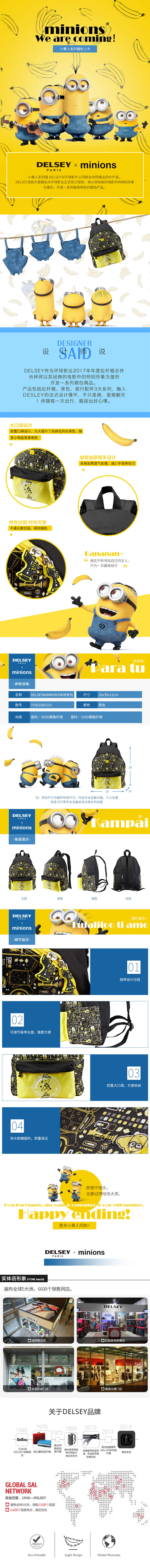概述:独特小黄人拉片设计,底部加厚耐磨。执行全球统一的Delsey质量标准