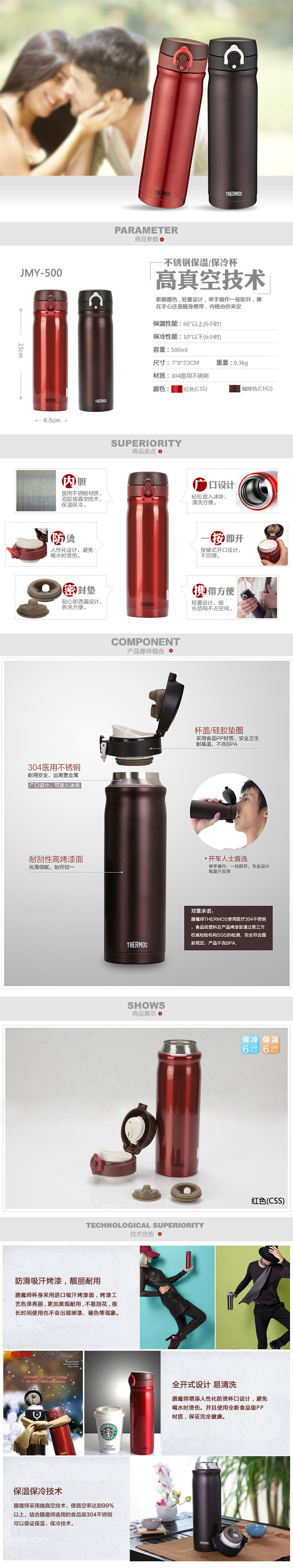 概述:内外304医用不锈钢,食用级PP塑胶,健康环保,长效保温,双重卡扣,滴水不漏,单手操作使用便捷,车载好伴侣