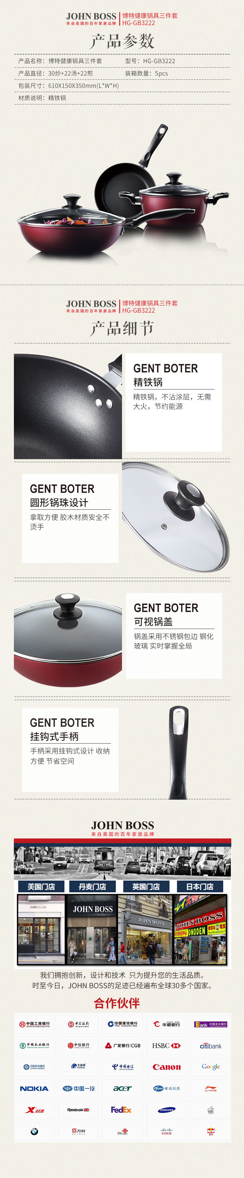 JOHN BOSS 健康锅具三件套 HG-GB3222