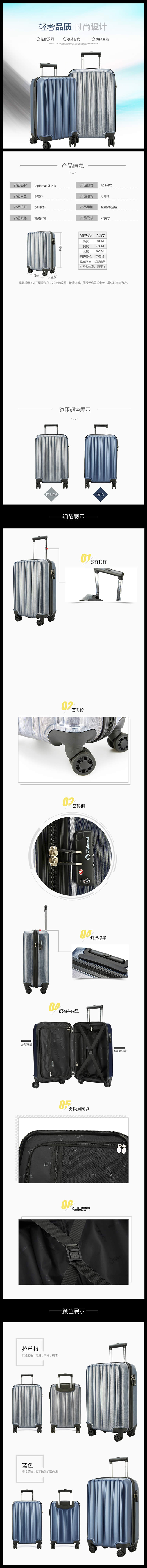 主料ABS+PC材质,防寒防高温防撞击;TSA海关密码锁,铝合金拉杆,手感舒适,坚固耐用,360度万向轮,旋转轻松灵动;